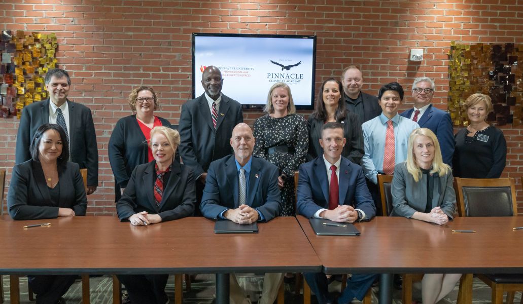 BOILING SPRINGS, N.C.—Representatives from Pinnacle Classical Academy in Shelby, N.C., and Gardner-Webb University met recently to establish a Skills Training Partnership Agreement. Offered through GWU’s Searight Professional and Continuing Education (PACE) Program, this five-week summer college readiness experience will strengthen Pinnacle high school students’ development of advanced analytical, critical-thinking and problem-solving skills.