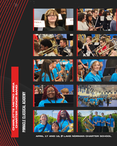 Seven Pinnacle Classical Academy students proudly participated in the Charlotte Metro Area Charter Honor Band on April 17–18 at Lake Norman Charter School, culminating in a concert at the end of the clinic.