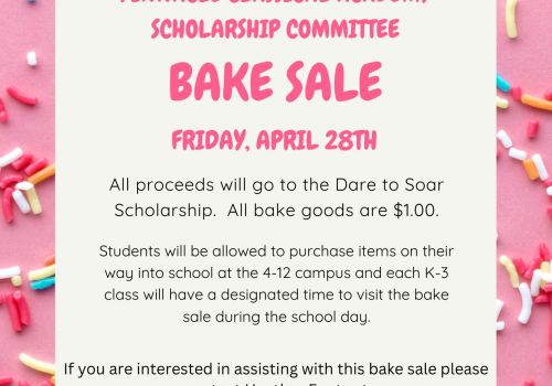 Thank you in advance for helping us with our third annual bake sale. All of the proceeds will go to the PCA scholarship committee in an effort to provide more scholarship funds to our seni…